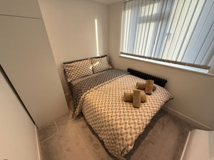 This stylish ground-floor apartment sleeps 2 guests, perfect for couples and business travellers. It features an open-plan living area, a king-sized bedroom with storage, a modern shower room, and a fully equipped kitchen. Smart TV, high-speed WiFi, and an allocated parking bay in a secure car park are included.