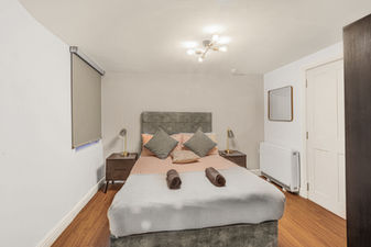 This stylish and contemporary studio is designed for two, featuring a comfortable double bed, smart TV, and an open-plan kitchen with modern appliances. The cosy living area is perfect for relaxing, and the sleek bathroom includes a walk-in shower. Standard Wi-Fi is provided.